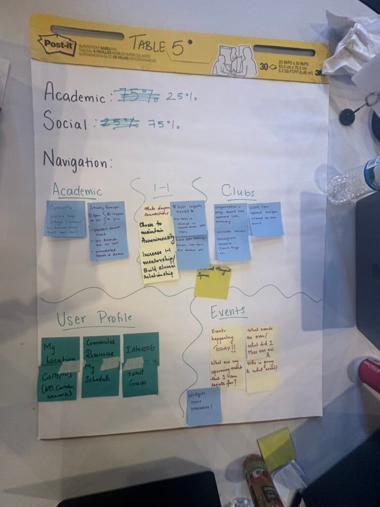 In regard to their social health, many students relied on Instagram to stay updated on campus programming and discover clubs and organizations centered around their interests, a discovery that surprised our design team in its popularity. Keeping these findings in mind, it was time to move onto data analysis and product design. What could a solution look like that would help students find friends, get academic support and discover extracurricular activities that they would enjoy?