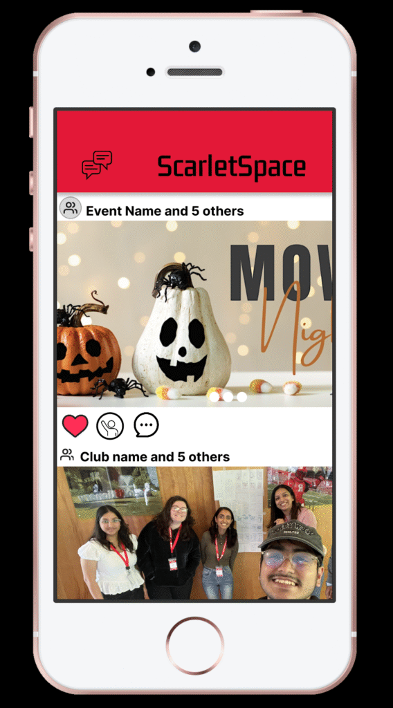 ScarletSpace was intended to act as an official university app for users to find clubs and student organizations, get live updates from friends and clubs about programming, track their academic and personal scheduling, and join study groups based on their personal schedule which could be uploaded to the app.